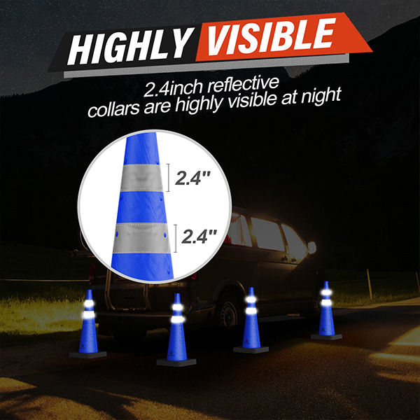 Highly Visible: The bright blue color and 360-degree reflective collars make the parallel parking cones visible from a long distance during day or night