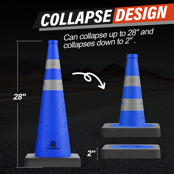 RoadHero 28 Inch Collapsible Traffic Safety Cones with Black Weighted Base, Blue Parking Cones with Reflective Collars for Road Safety, Driving Training, Parking Lots, 1 Pack