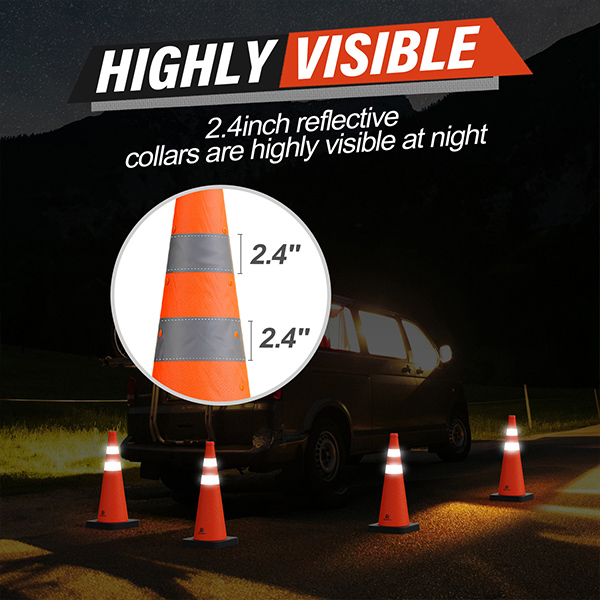 Highly Visible: The bright orange color and 360-degree reflective collars make the parallel parking cones visible from a long distance during day or night
