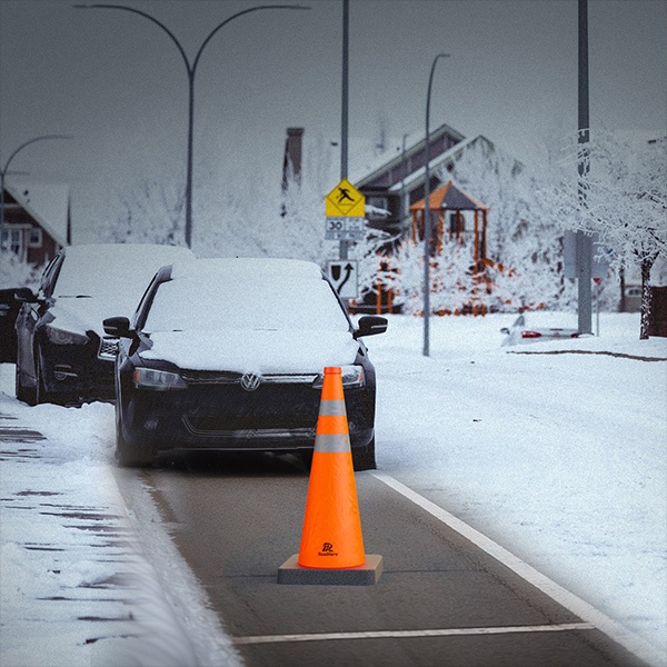 Heavy Sturdy Base: The base of parking cones is 13" X 13" and the weight of each cone is 3 lbs, it's weighted enough and won't be blown down easily by the wind