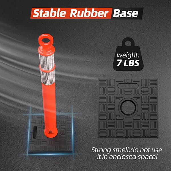 • Weighted Base: Each heavy-duty rubber base weighs about 7 lbs and keeps the large traffic cones in place where you place them